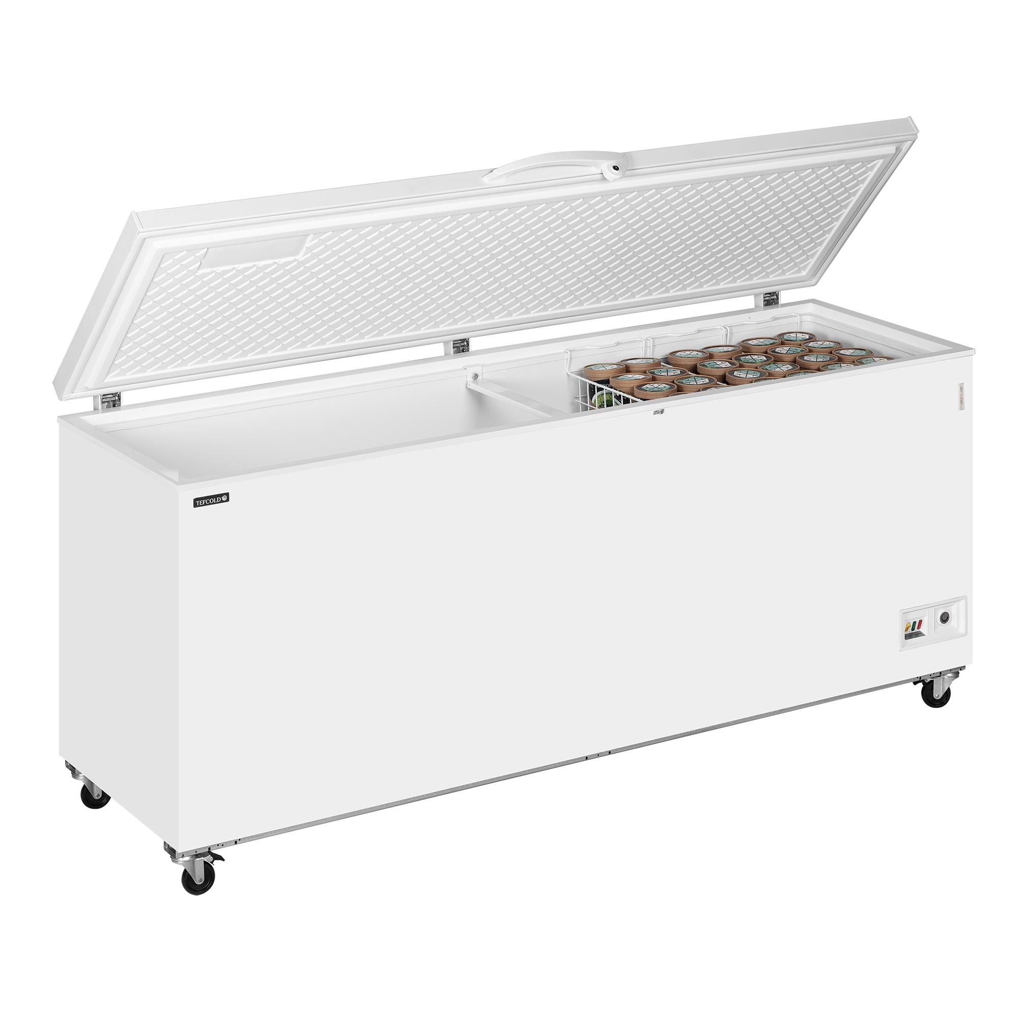 Tyto mrazničky jsou skvělou volbou nejen pro skladování zmrzliny, ale také pro jakékoli další potraviny, které si přejete udržet v dokonalém mrazu. TEFCOLD CF SL mrazničky jsou vybaveny třemi praktickými koši, které vám umožní optimálně uspořádat a organizovat váš mražený obsah. Vaše zmrzlinové poháry, sorbety a další mražené dobroty budou vždy snadno dostupné a přehledně uložené. Jedinečnou vlastností těchto mrazniček je jejich rukojeť se zámkem, který zajišťuje, že vaše skladované produkty budou chráněny před neoprávněným přístupem. Víko může být buď bílé nebo nerezové (označení S).