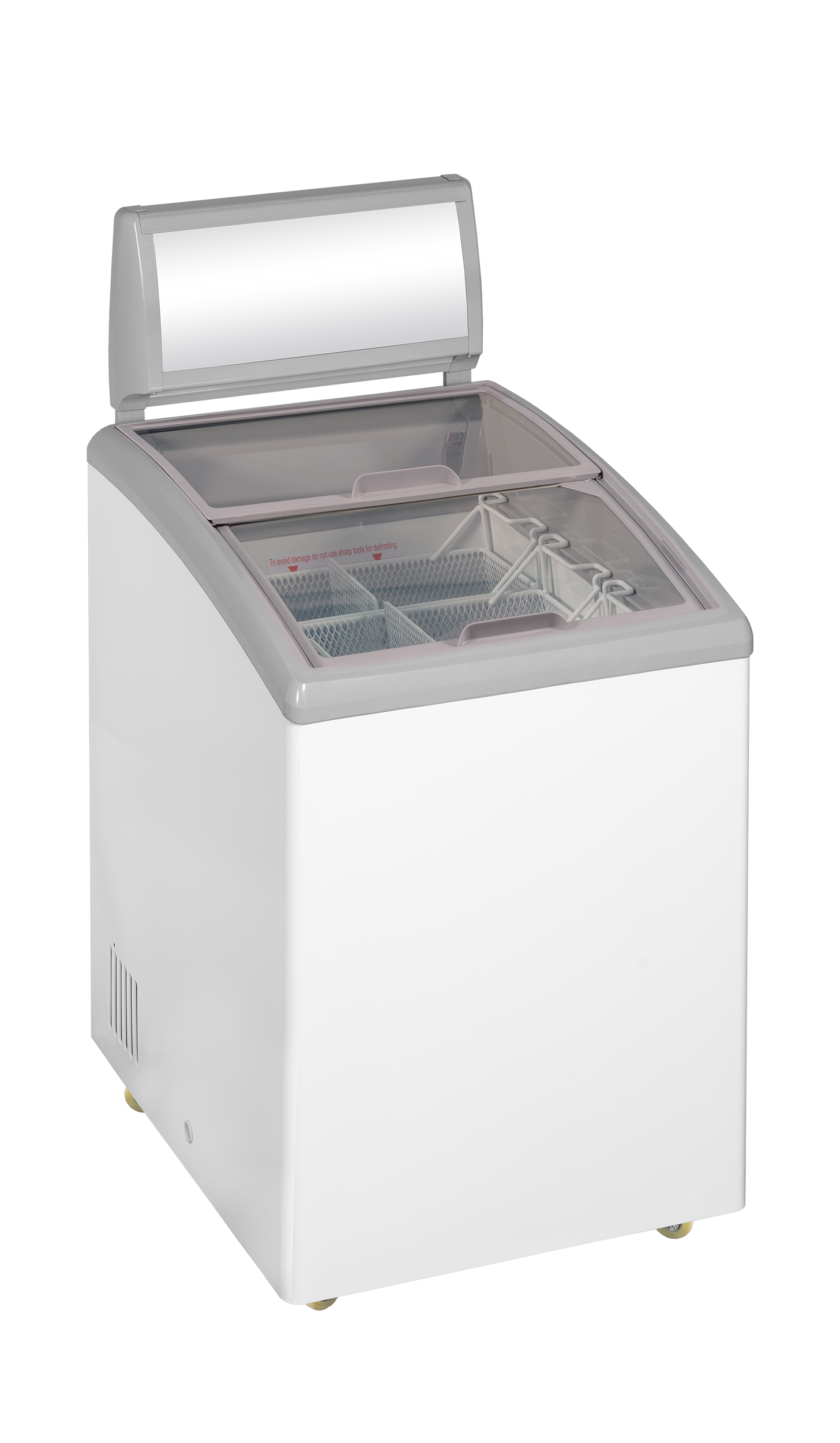 Prémiová řada pultových mrazniček IDC má praktický design s šedým rámem a s oblými posuvnými prosklenými víky. Má velmi stabilní a pevnou konstrukci a navíc je vybavena kolečky, takže s ní lze snadno manipulovat a přesouvat mrazničky po provozovně. Mrazničky se skvěle hodí k vystavování mražených potravin včetně zmrzliny.