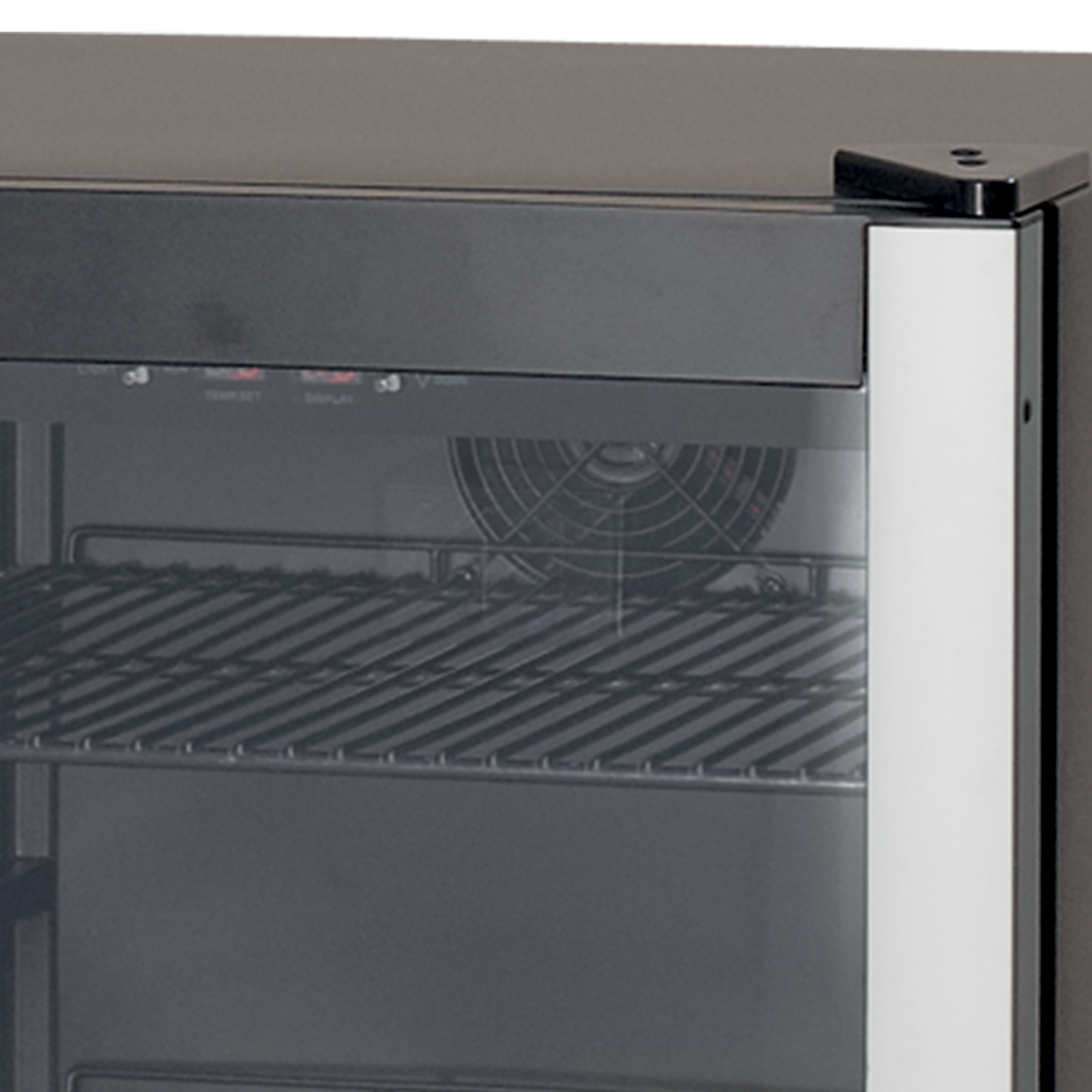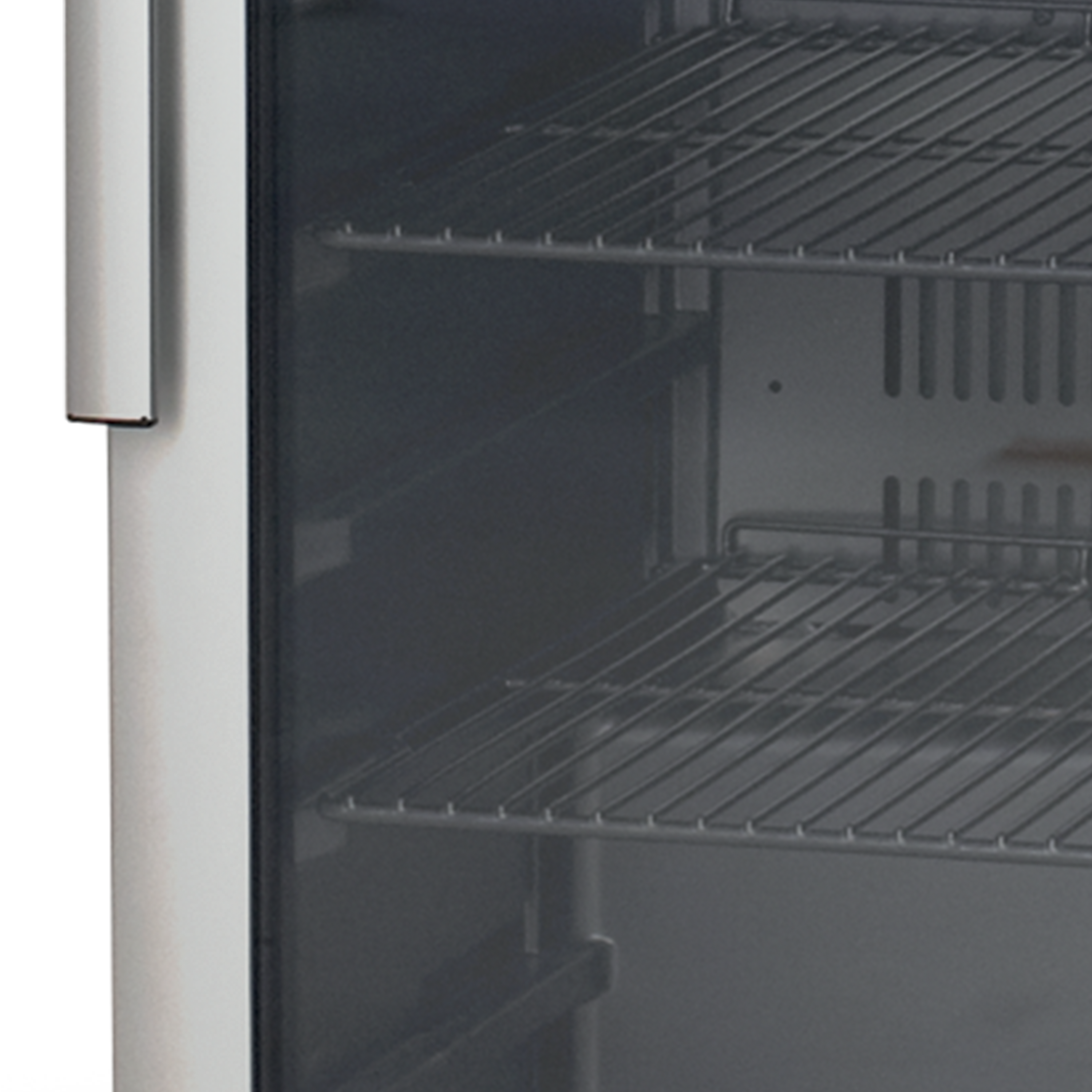 Tato jednodveřová chladicí skříň s prosklenými dveřmi a ventilovaným chlazením je ideální pro prezentaci chlazeného zboží v prodejnách a obchodech. Skříň má tři výškově nastavitelné rošty, takže se snadno přizpůsobí různým velikostem nápojů a typům potravin. Díky proskleným dveřím a ventilovanému chlazení je zajištěna optimální viditelnost a proudění vzduchu, což pomáhá udržovat konstantní teplotu v celé skříni. S černým interiérem a exteriérem je tato skříň moderní a elegantní, což ji činí vhodnou nejen pro gastronomické provozy, ale také pro obchody s potravinami a nápoji.