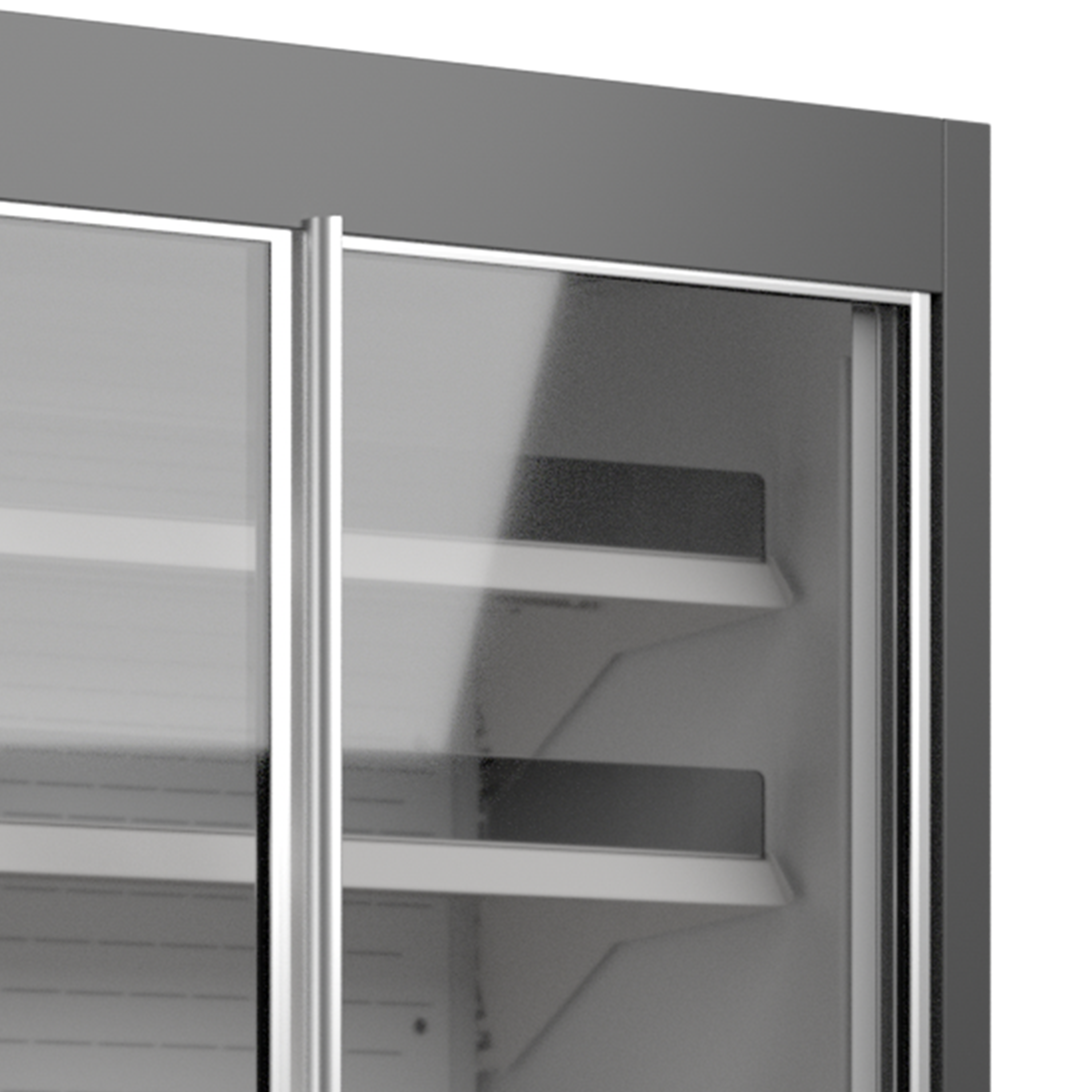 • spojování do sestav – bočnice 5 cm • ekologické chladivo R290 • tyče a háky na uzeniny • lakované police • nerezové police • odtávací tyč pod výparníkem